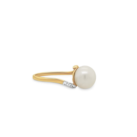 14K Gold Diamond & Pearl Bypass Ring
